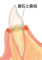 唾液をはじめとする様々な成分で石灰化してきます。それが歯石です。